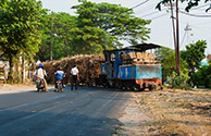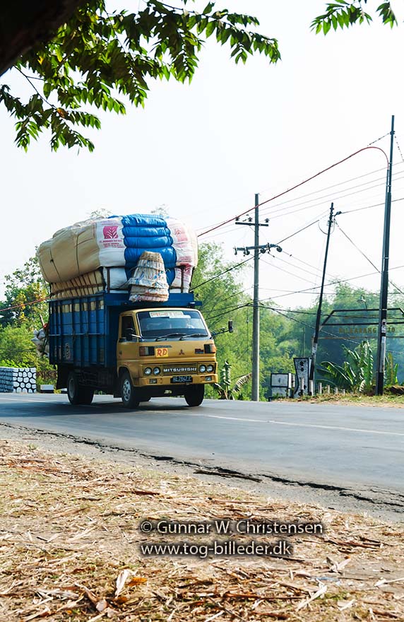 En lastbil med højt læs på broen ved PG Puwodadi 12.08.2009 |