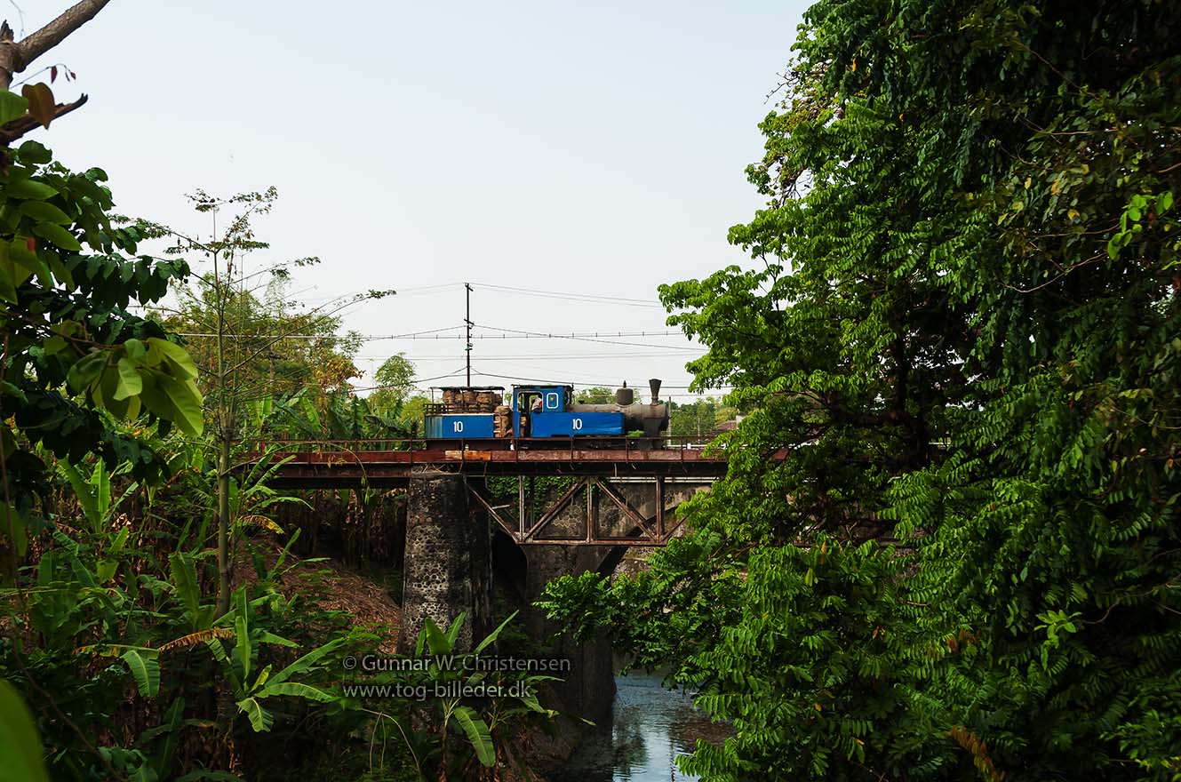 Lok 10 med læssede vogne på broen ved PG Puwodadi 12.08.2009 |