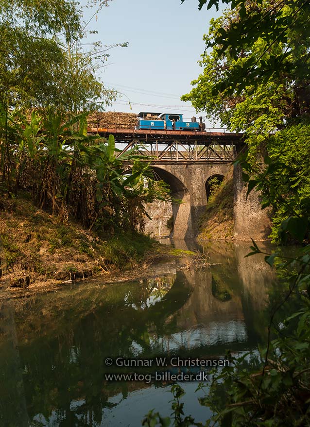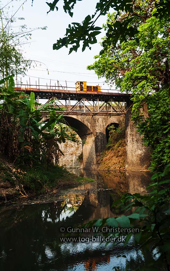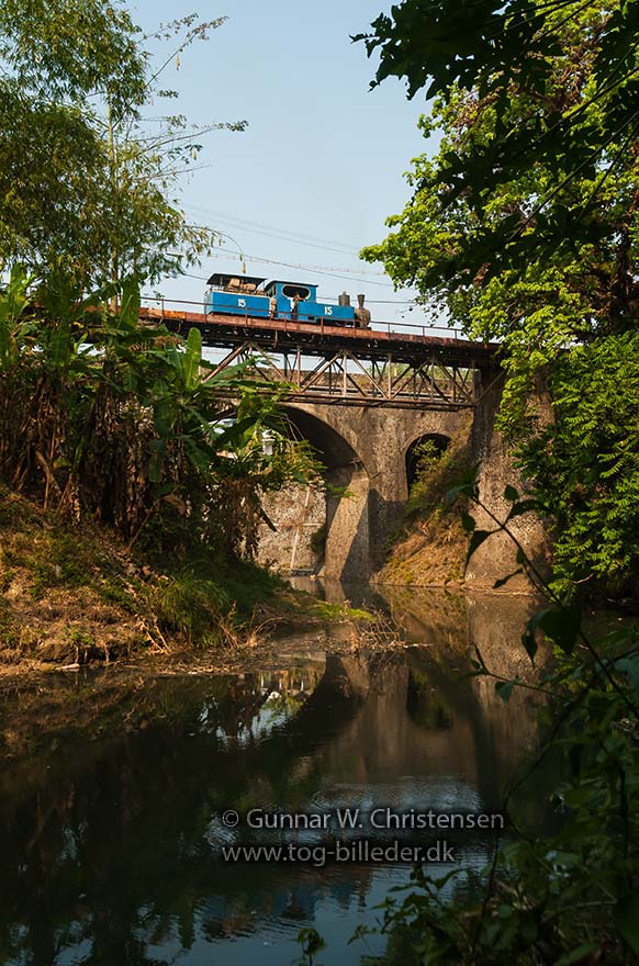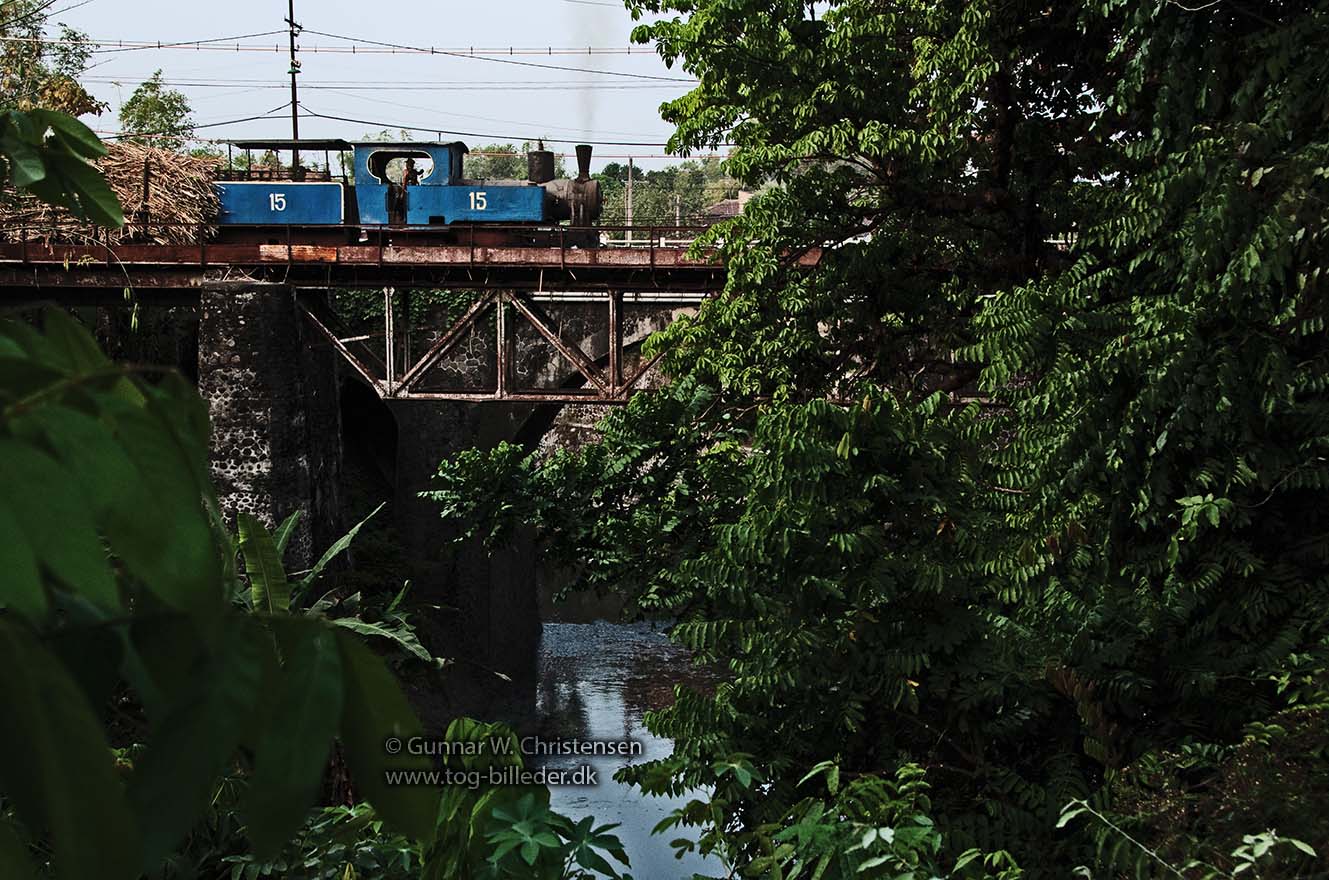 Lok 15 med læssede vogne på broen ved PG Puwodadi 12.08.2009 |