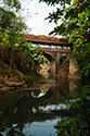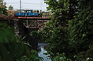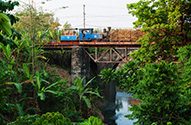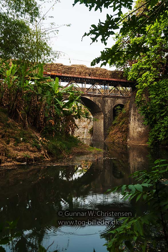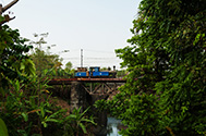 Lok 15med læssede vogne på broen ved PG Puwodadi 12.08.2009 |