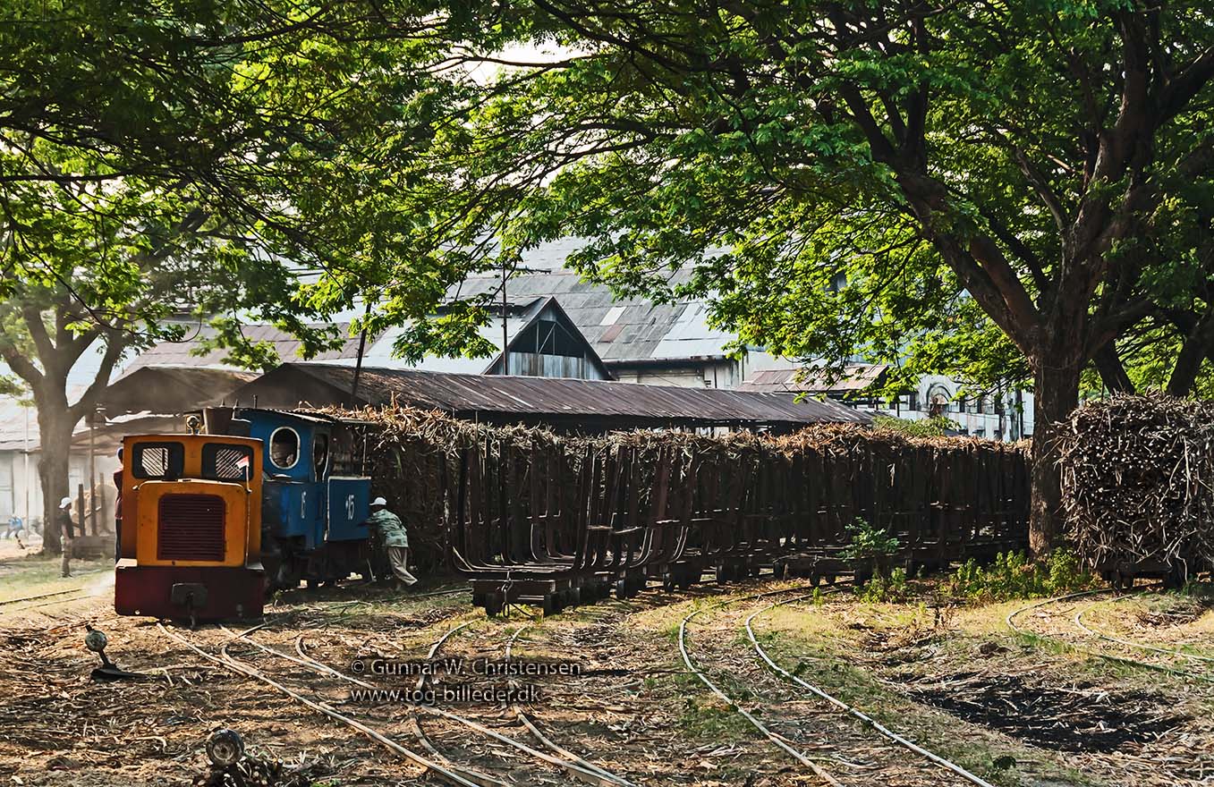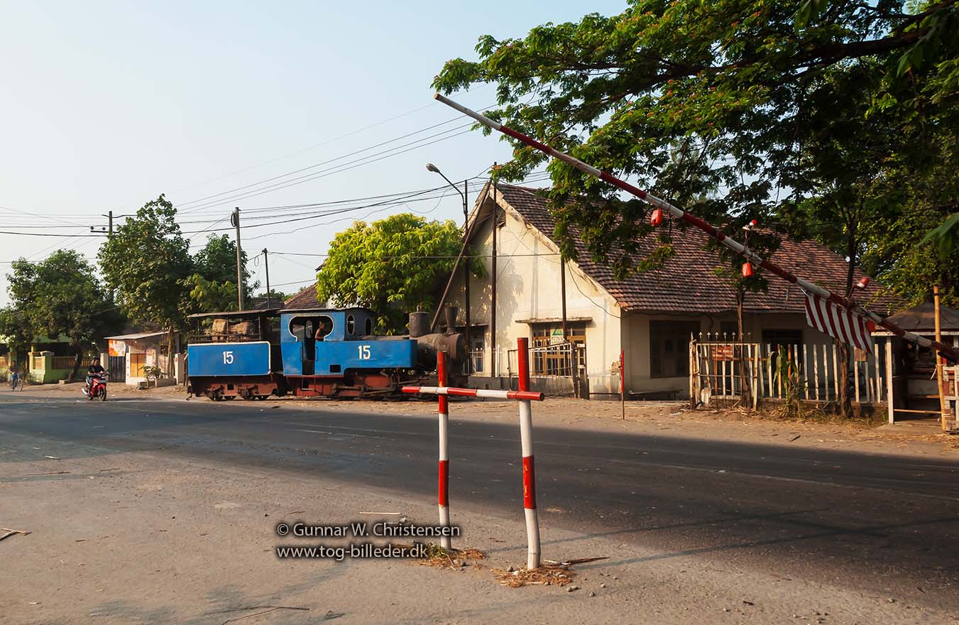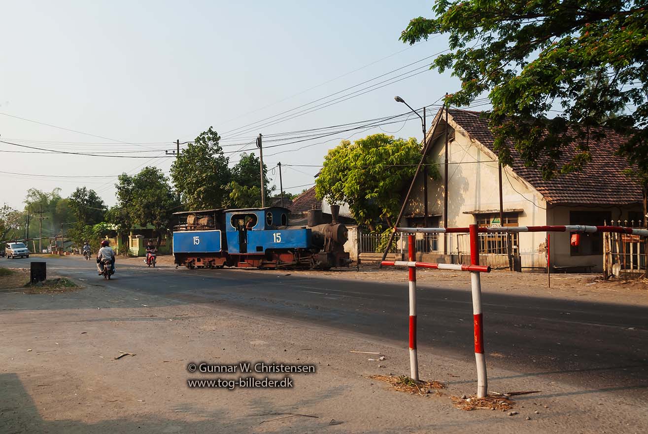 Lok 15 på vej over landevejen ved PG Puwodadi 12.08.2009