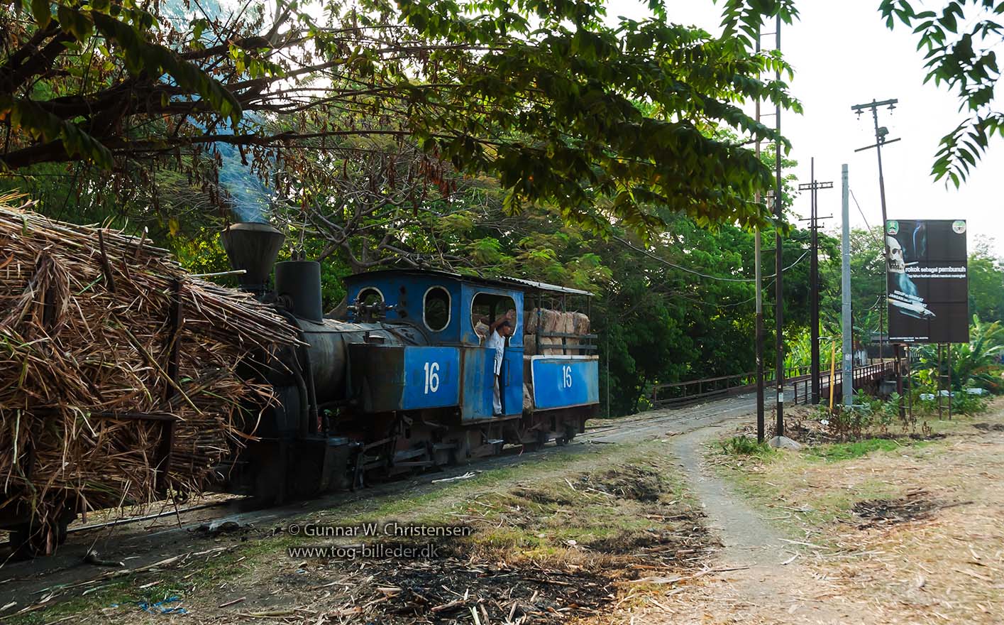 Lok 16 med læssede vogne før broen ved PG Puwodadi 12.08.2009 |