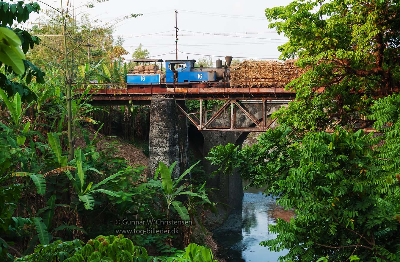 Lok 16 med læssede vogne på broen ved PG Puwodadi 12.08.2009 |