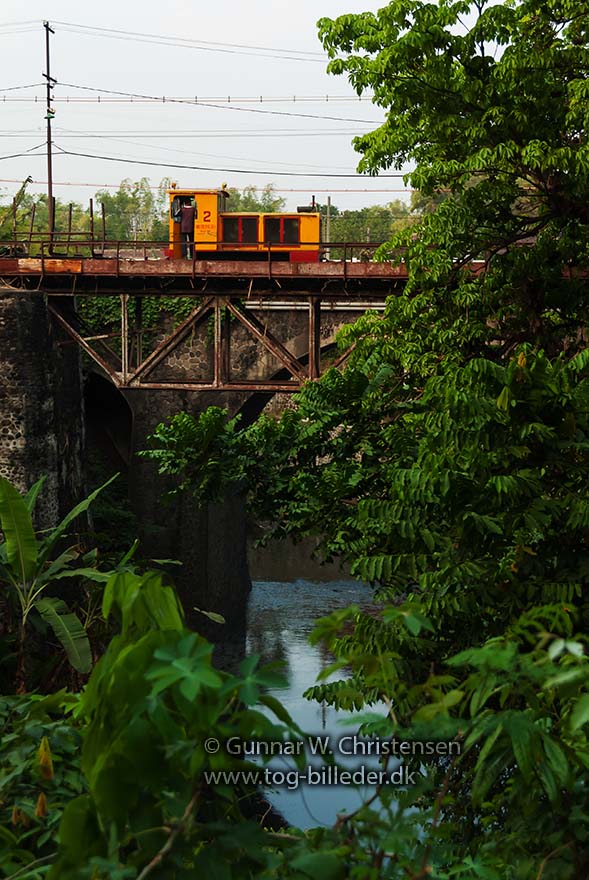 Diesel D 2 med læssede vogne på broen ved PG Puwodadi 12.08.2009