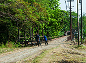 Lok 10 ved at krydse landevejen ved PG Puwodadi 12.08.2009