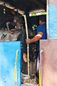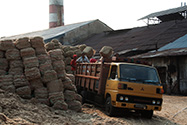 Lastbil bliver læsset med bargas ved remisen på PG Puwodadi 12.08.2009 |