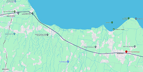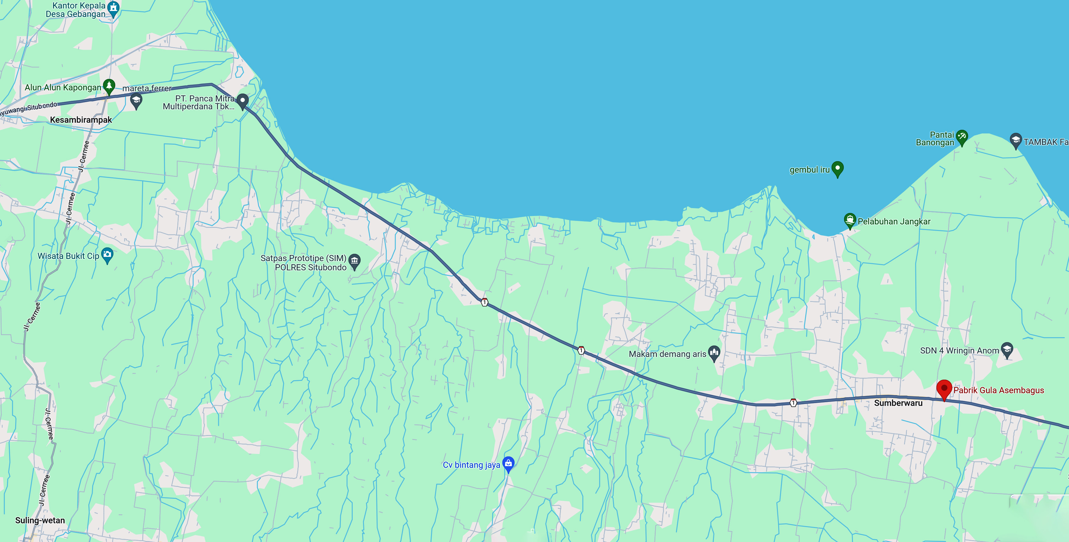Trafik på landevejen ved indgangen til PG Asembagus 20.08.2009