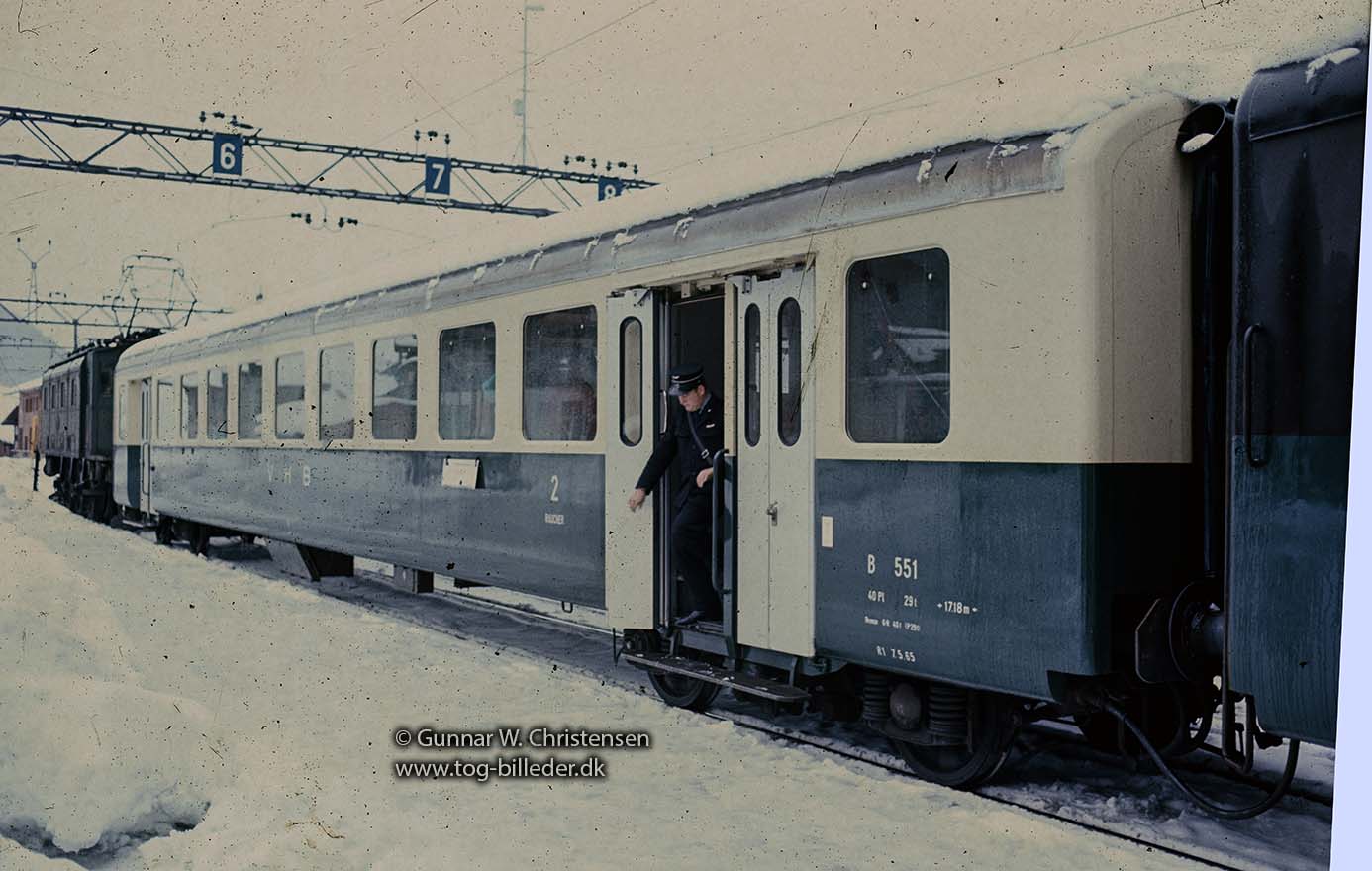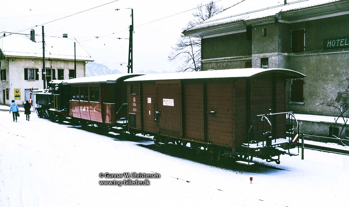 VHS personvogn holder i Zweisimmen i februar 1970