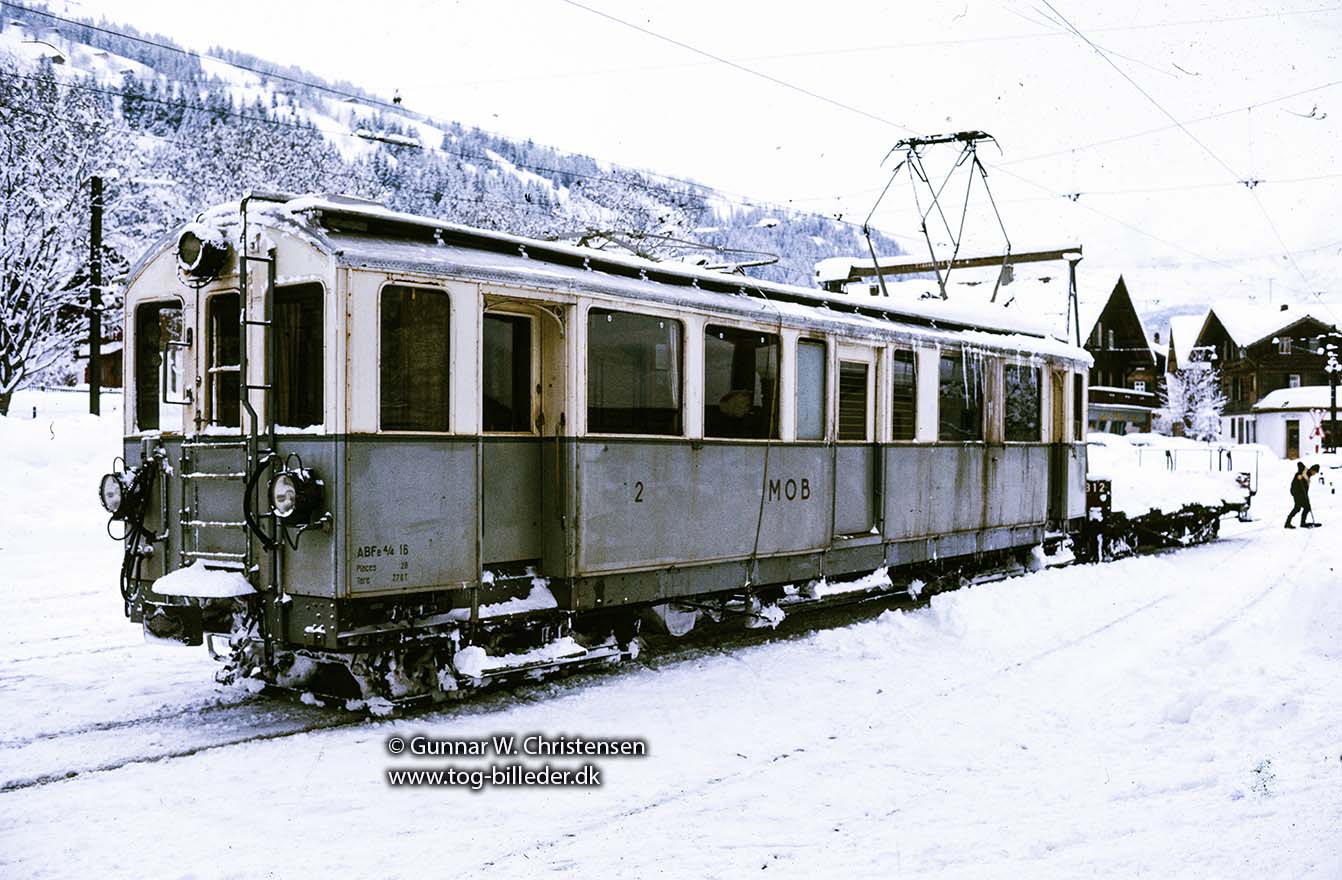MOB togsæt på stationen i Zweisimmen i februar 1970