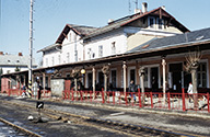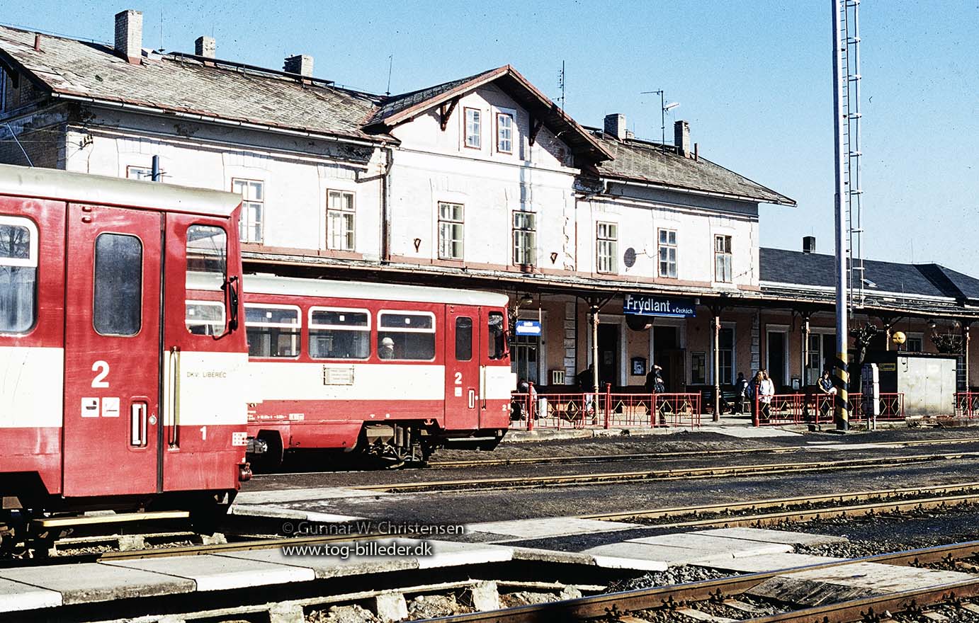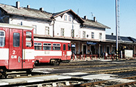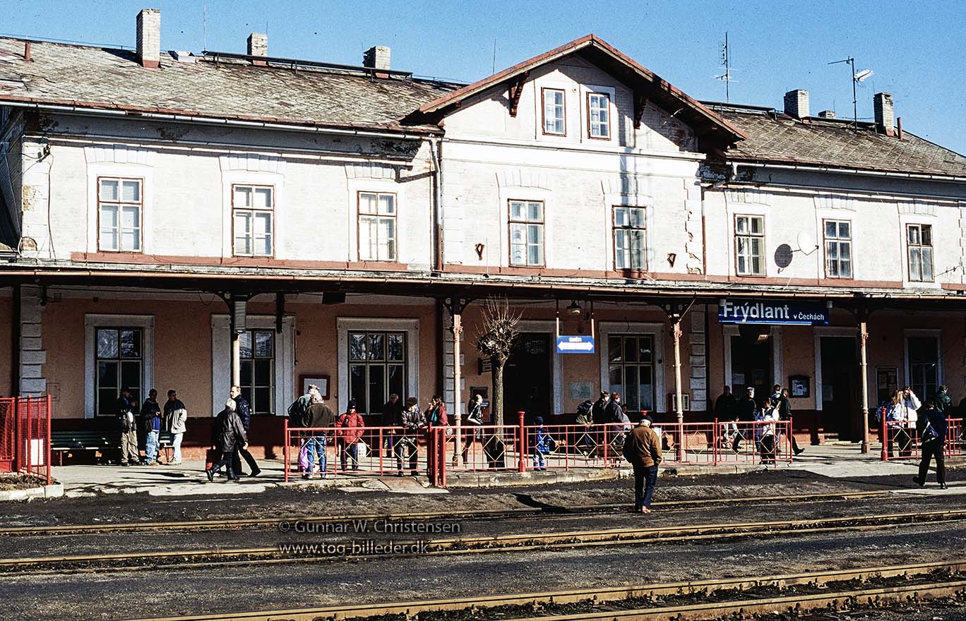 Front 810 183-4 ved perronog stationsskilt i Frydlant 25.02.2003