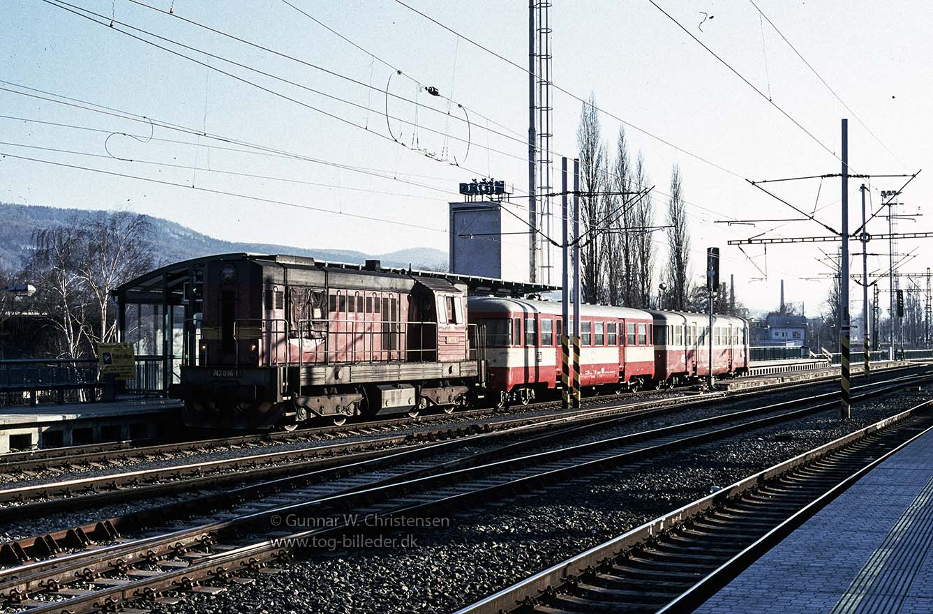 842 006-9 med bivogn 010 518-9 i Liberec 25.02.2003