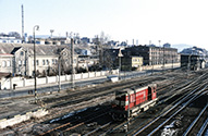 860 073-0 med tog og 773 178-7 på baneårdem i Usti nad Labem 27.02.2003