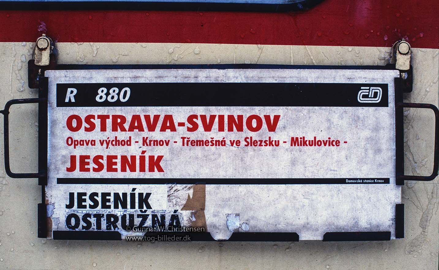 Ruteskilt R 80 Ostrava-Svinov til Jesenik i Krnov 04.02.2005