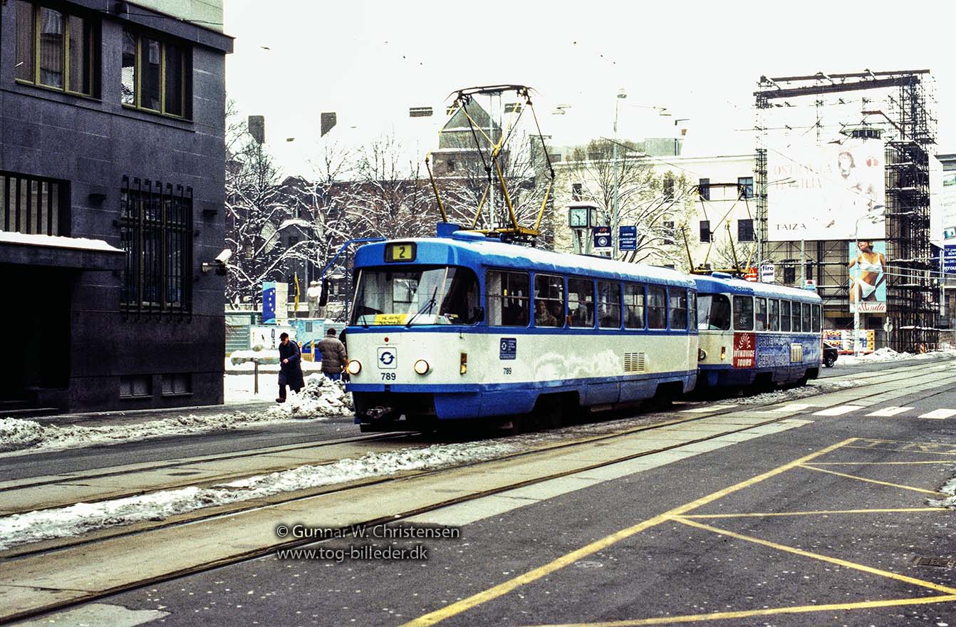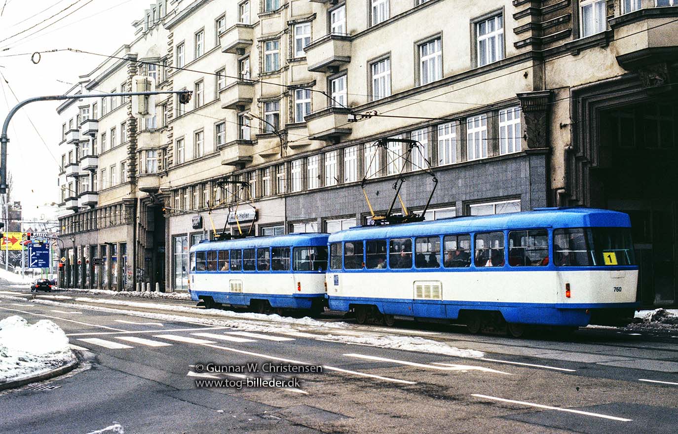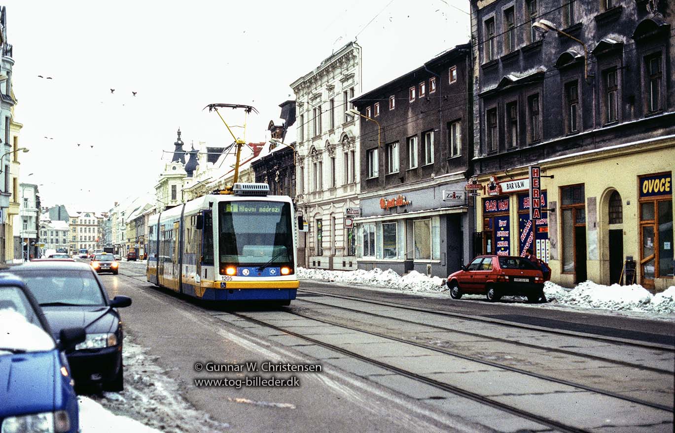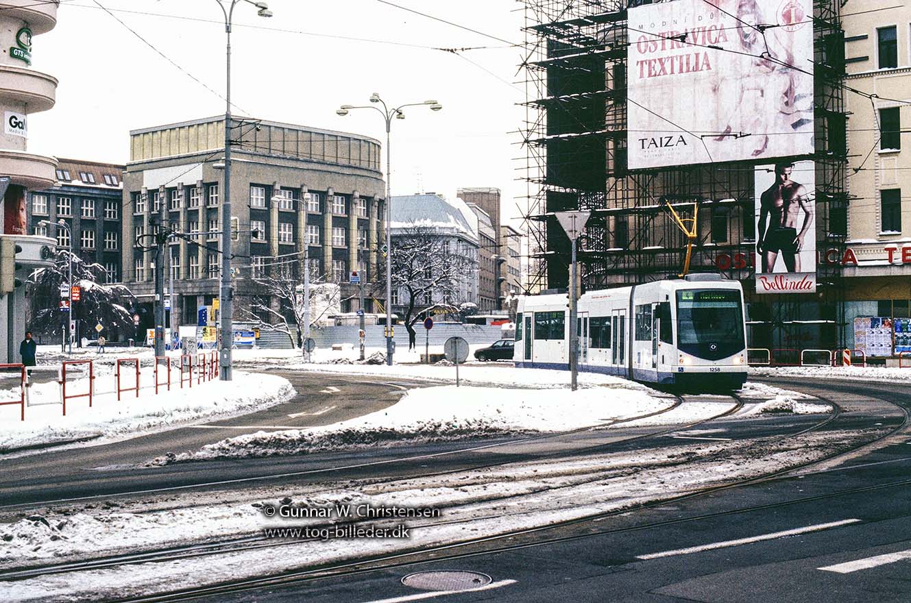 Sporvogn linje 1 ved banegården i Ostrava 05.02.2005