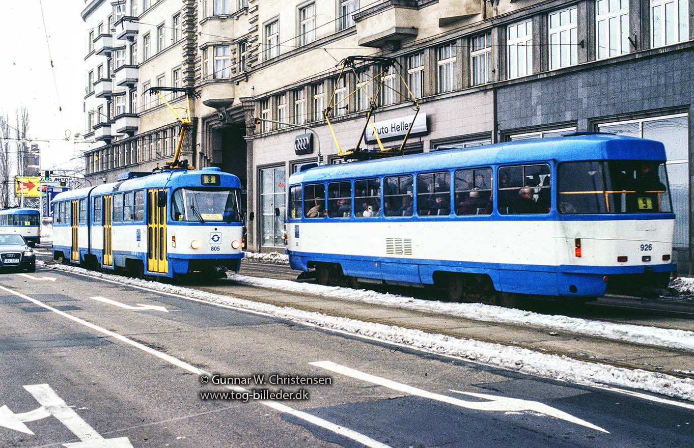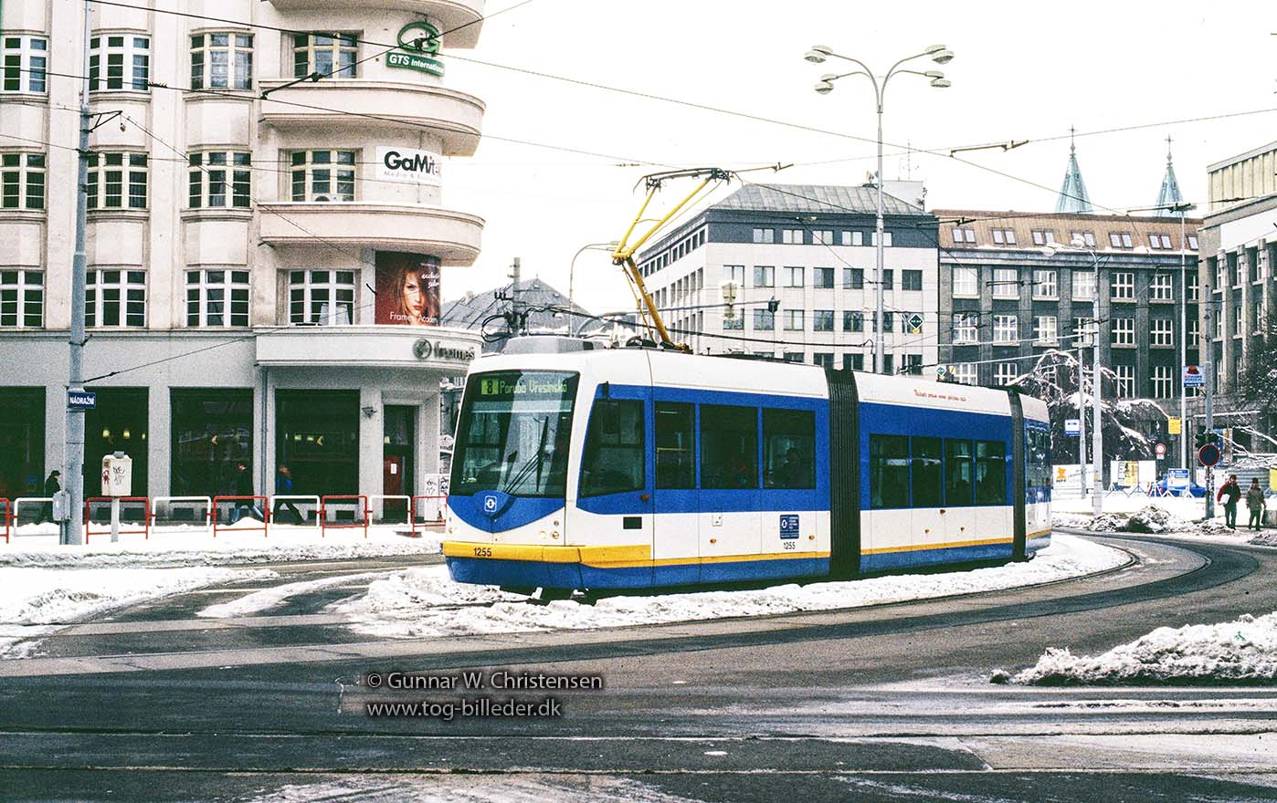 Sporvogn linje 8 ved banegården i Ostrava 05.02.2005