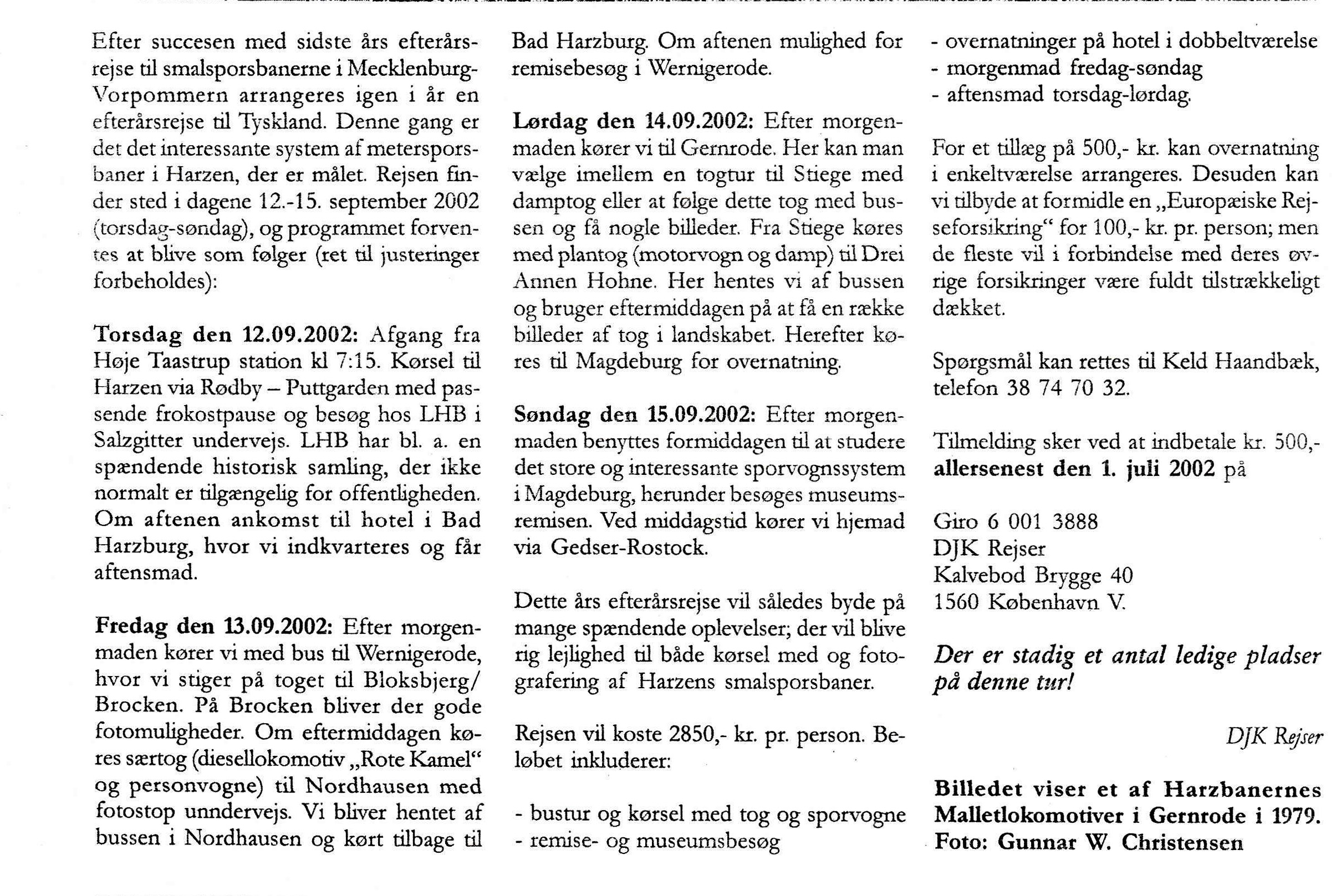 Jernbanen eXtra 's omtale af rejsen til Harzen.