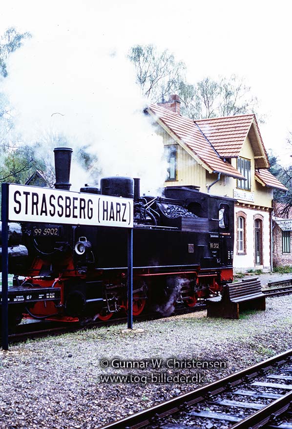 99 5902 rangerer ved stationsbygningen i Strassberg 07.05.2004