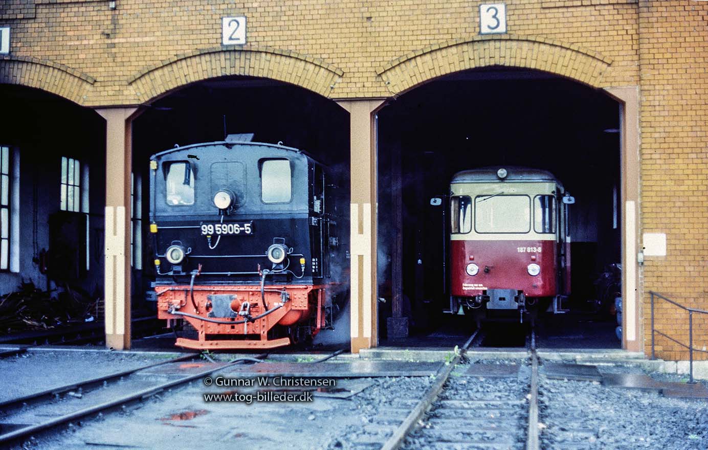 99 5906-5 og 187 013-8 i remisen i Gernrode 07.05.2004