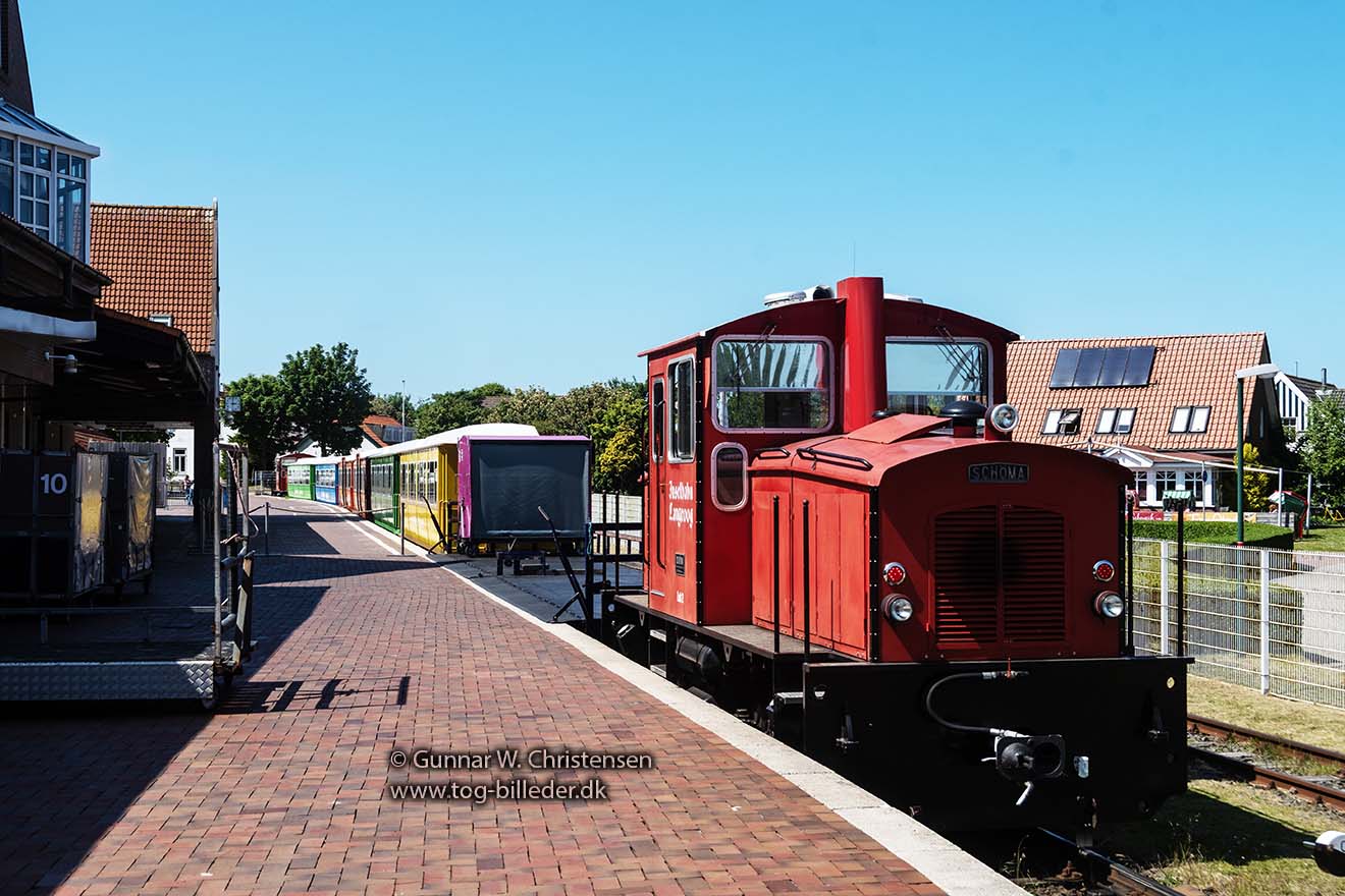 Inselbahn Langeoog Schöma lok 5 klar til afgang fra Langeoog havn