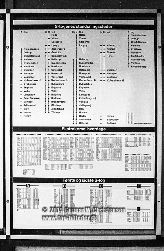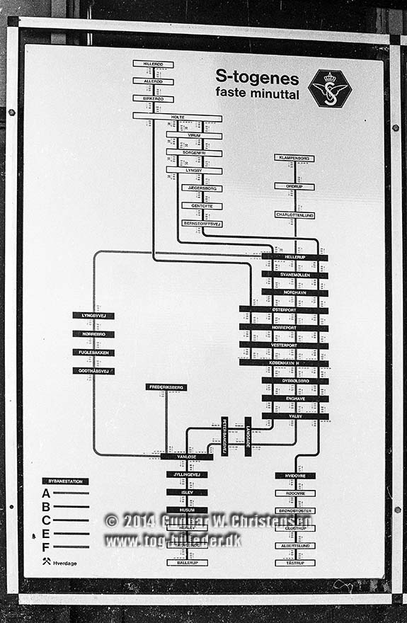 ![]() Den gyldige opslagskøreplan for S-tog før den nye strækning til Vallensbæk 15.09.1972 |