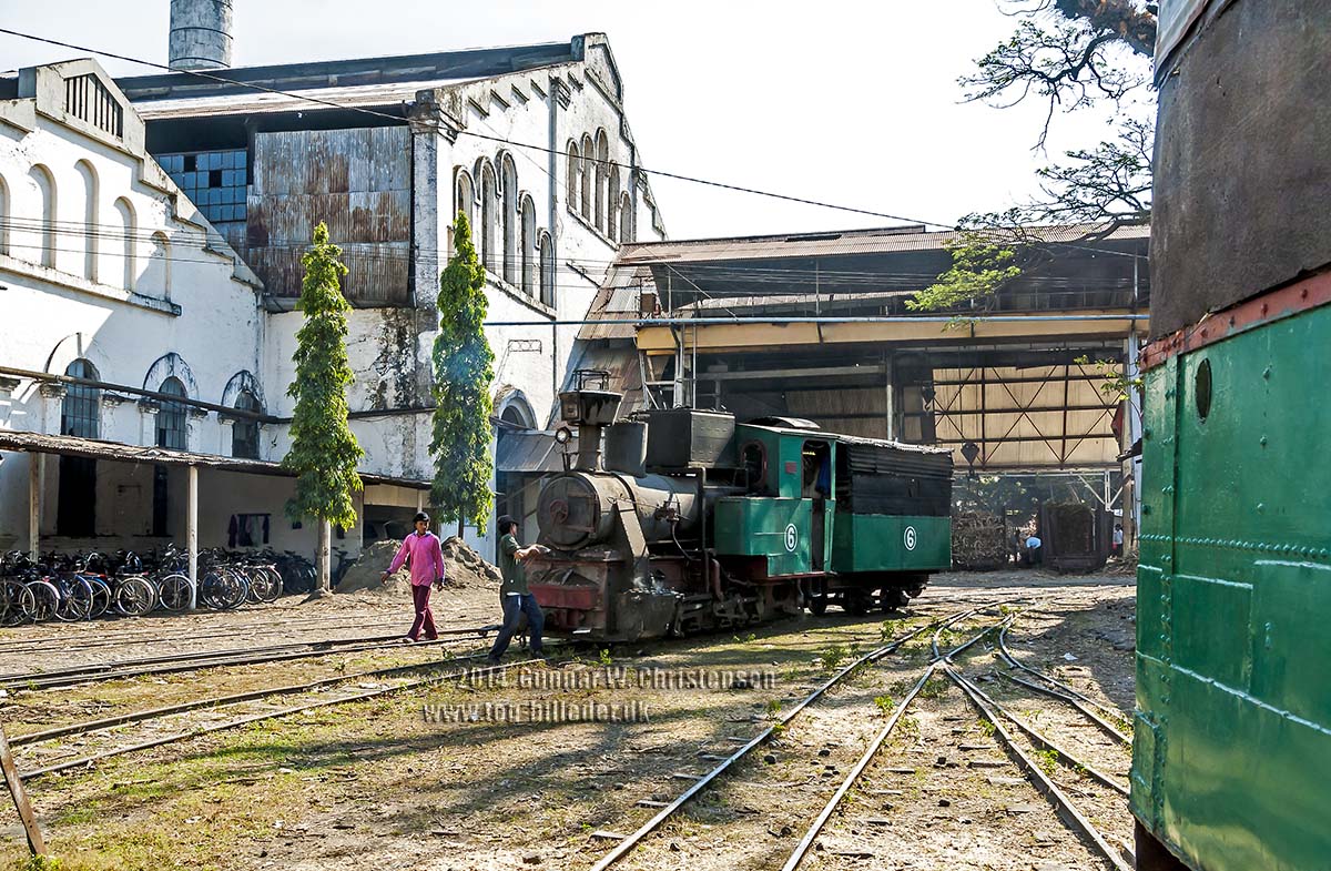 Lok S 6 kører væk fra remisen på Sumberharjo