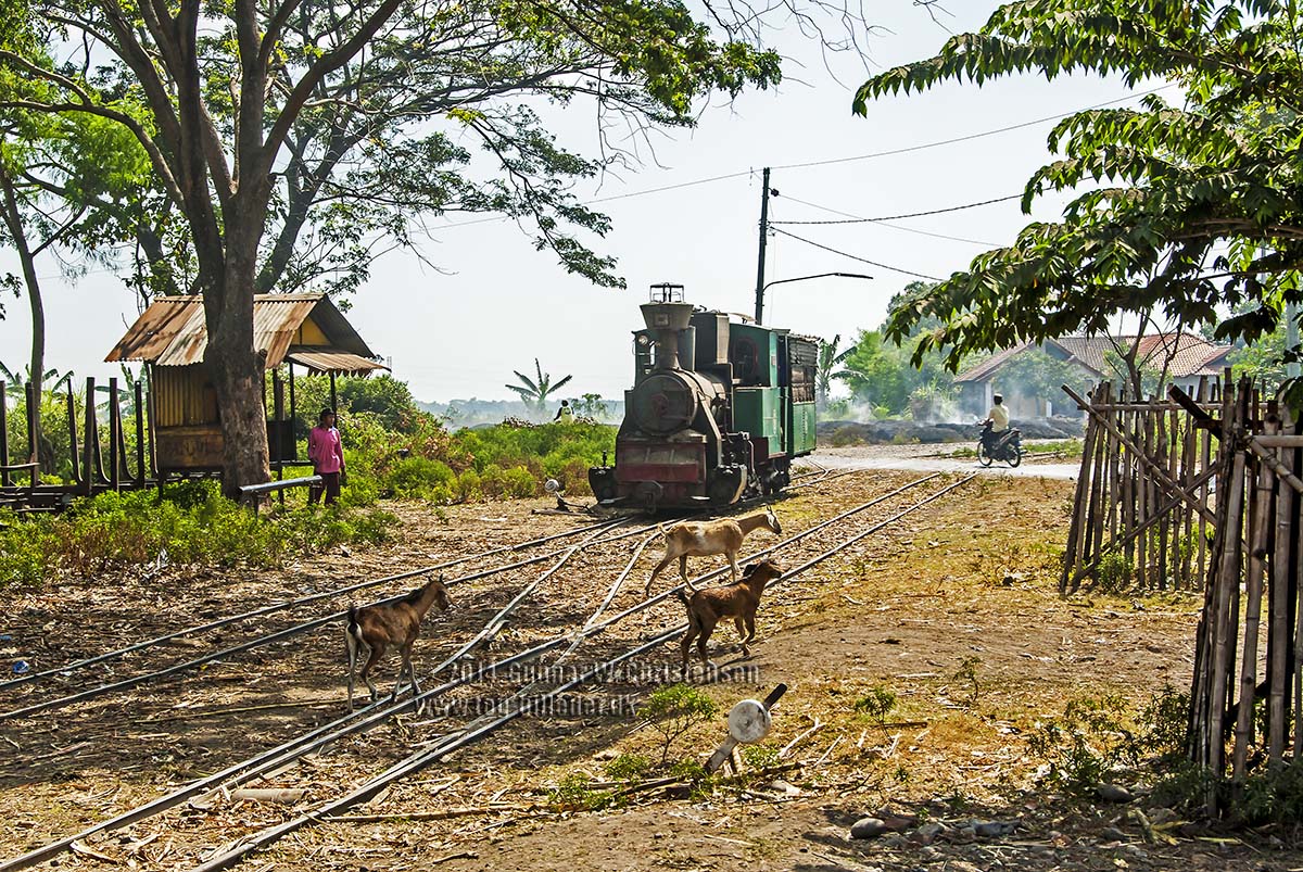 Lok S 6 ved ventepladsen før kontrolbygningen til Sumberharjo |
