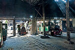 Tomme vogne skubbes hen til et af lokomotiverne ved remisen i