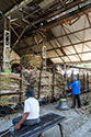Arbejdere flytter bargassen fra møllen i Sumberharjo