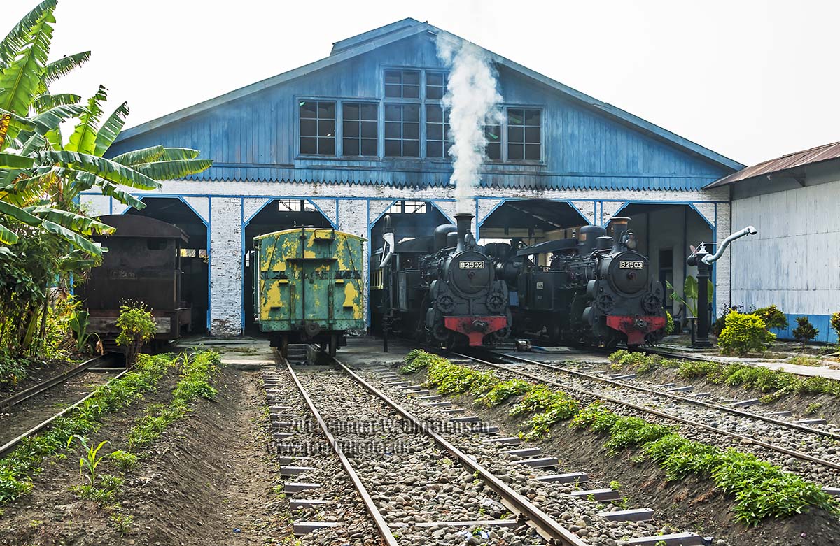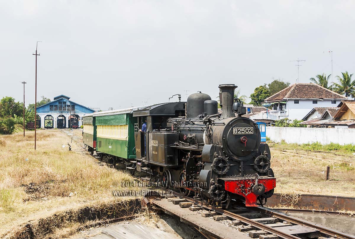 B 2502 med udflugtsvognene ved drejeskiven i Ambarawa |
