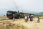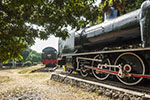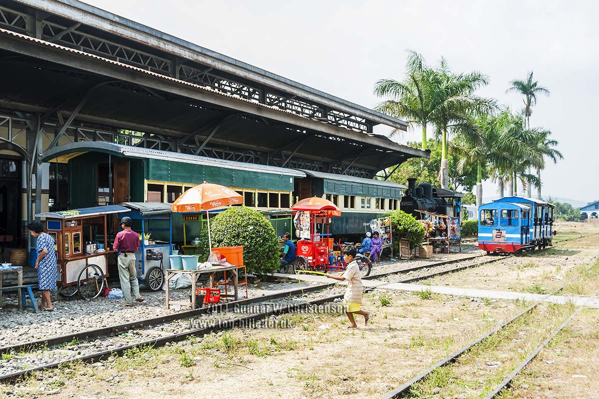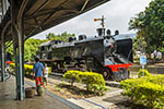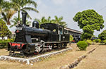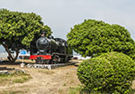 Denkmal lok viser vej til jernbanemuseet i Ambawara |