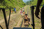 Ung fyr fra landsbyen på sin selvbyggede draisine medad stigningen |
