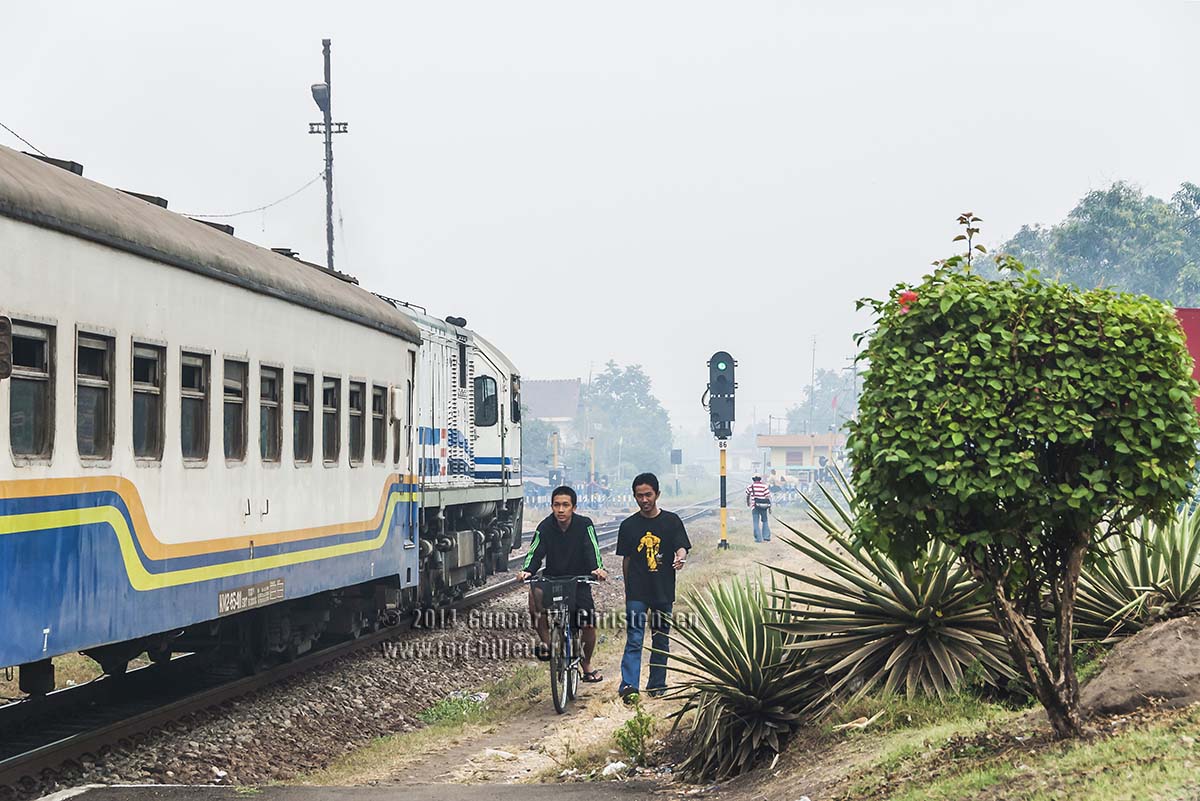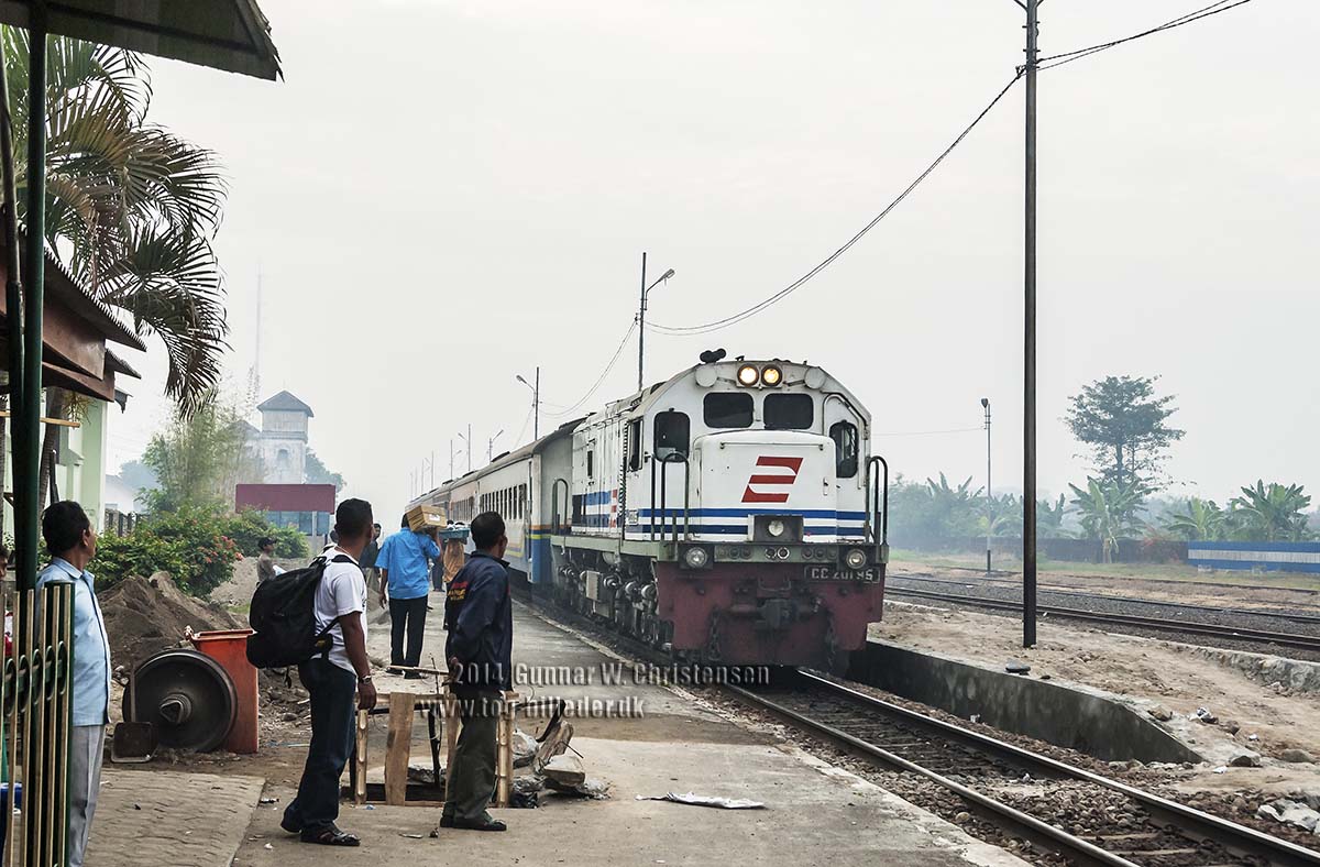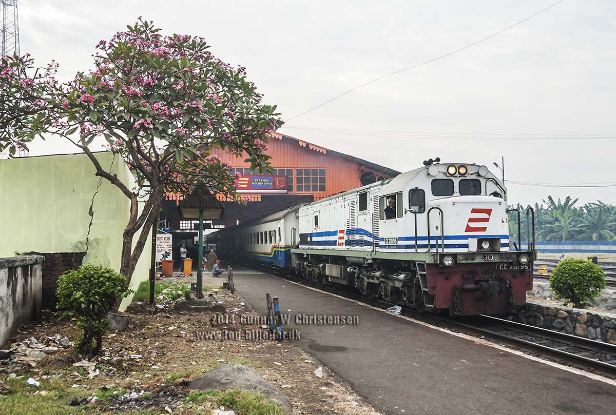 CC 201 95 med tog til Jakarta venter i Mojokerto |