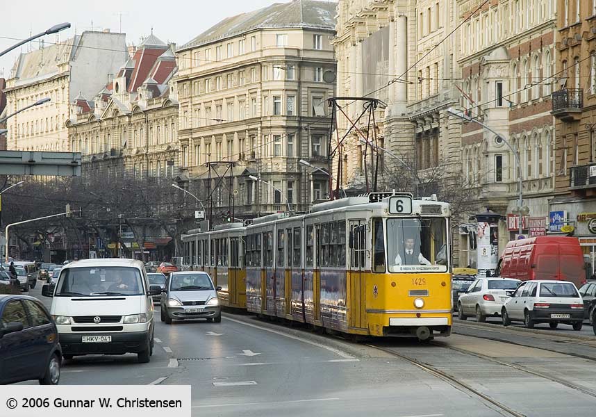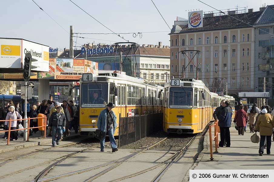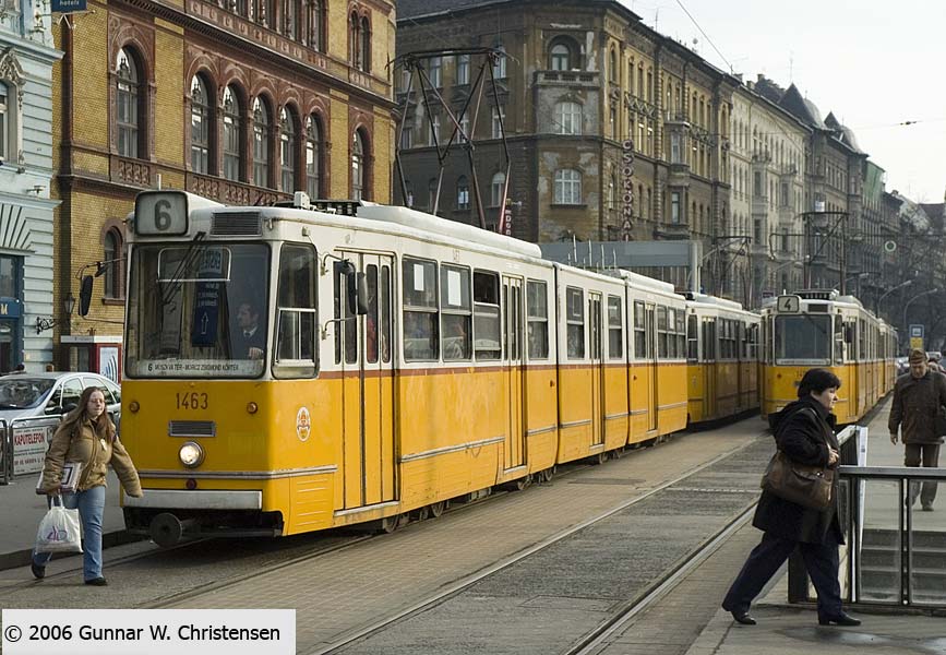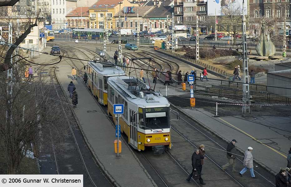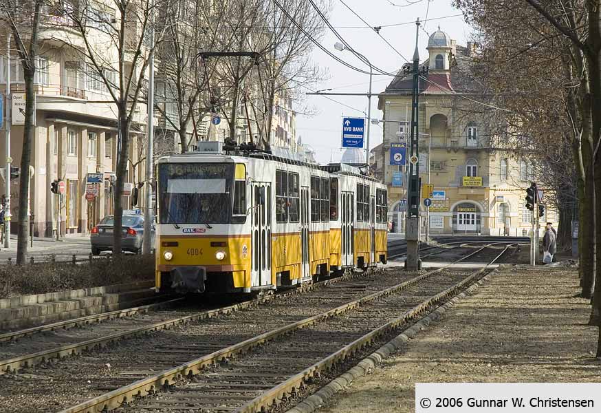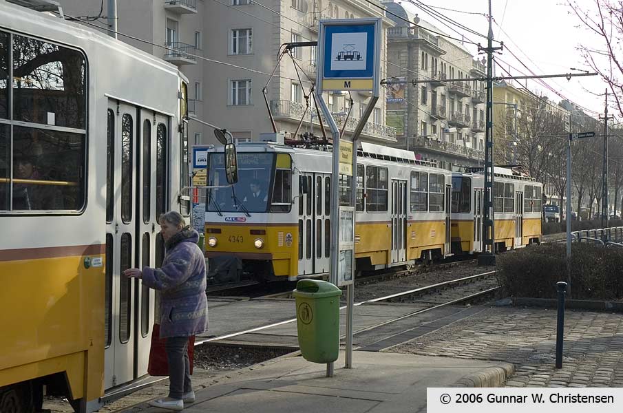 Linie 6 bagved linie 4 i Budapest 22.02.2006 |