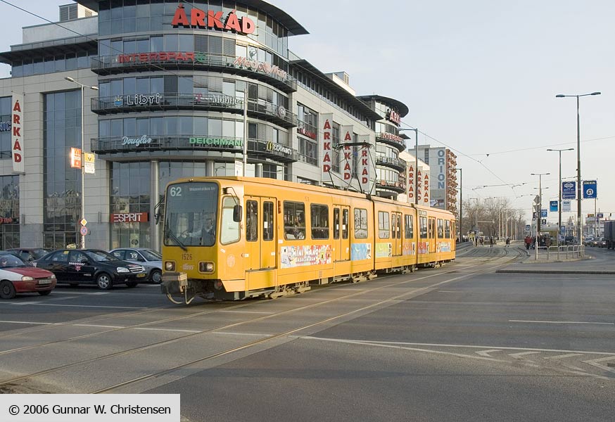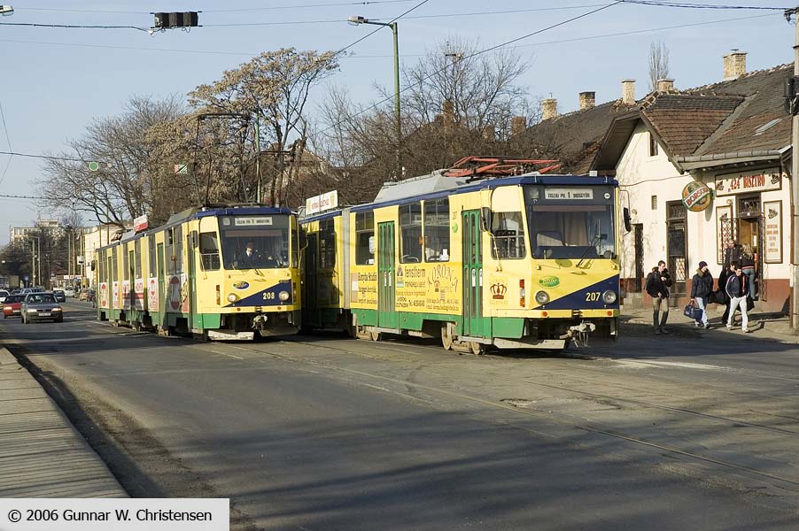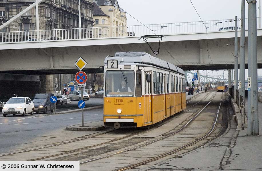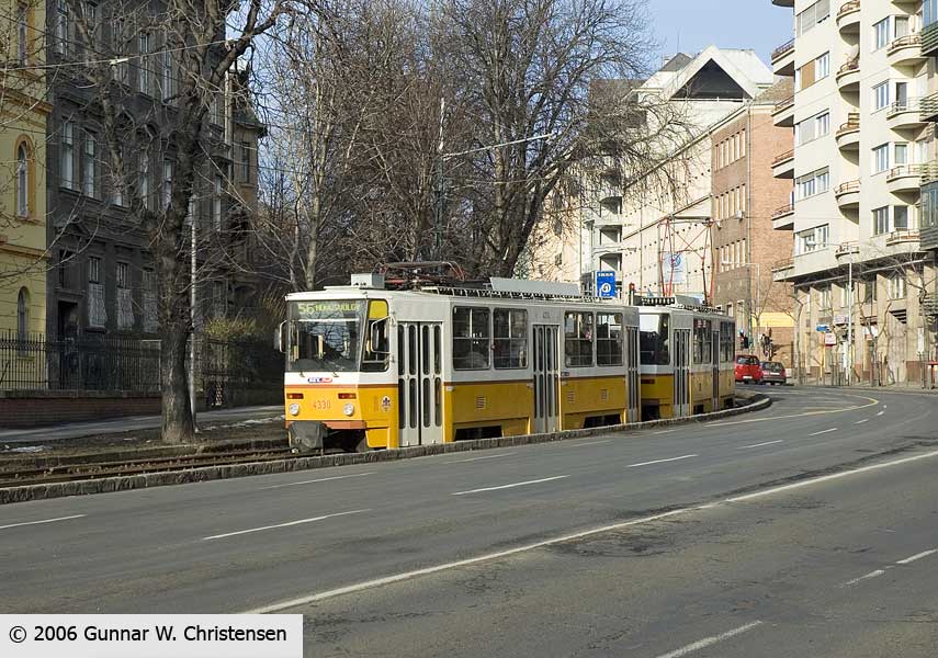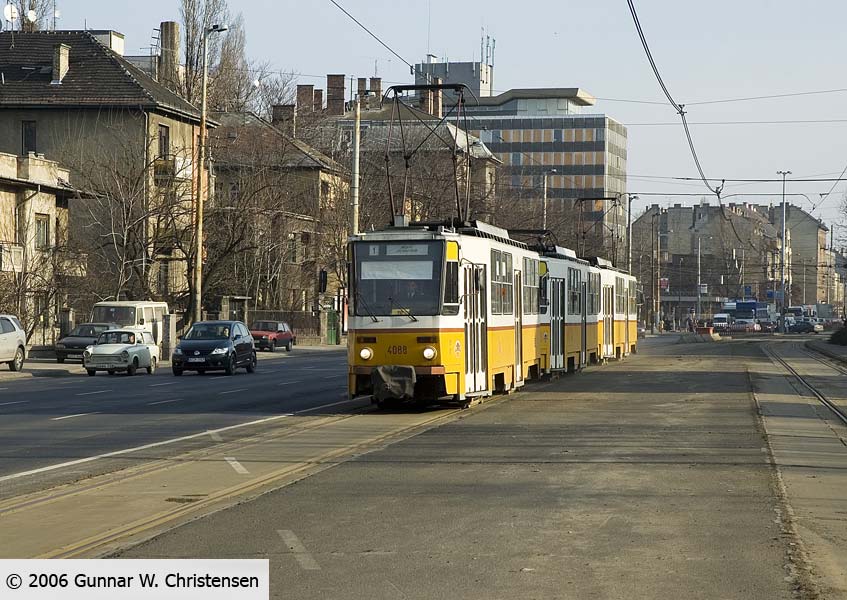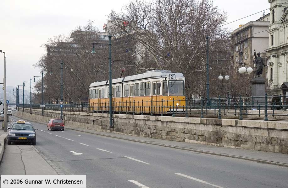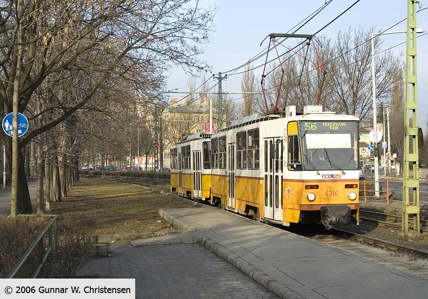 Linie 6 bagved linie 4 i Budapest 22.02.2006 |