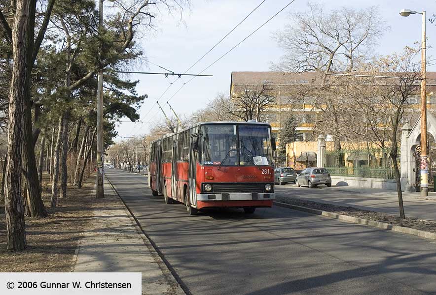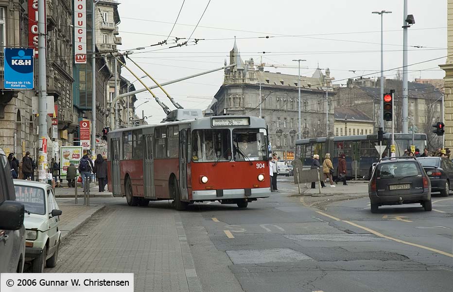 Trolleybus linie 76 svinger ud ved banegården Budapest Keleti 22.02.2006 |